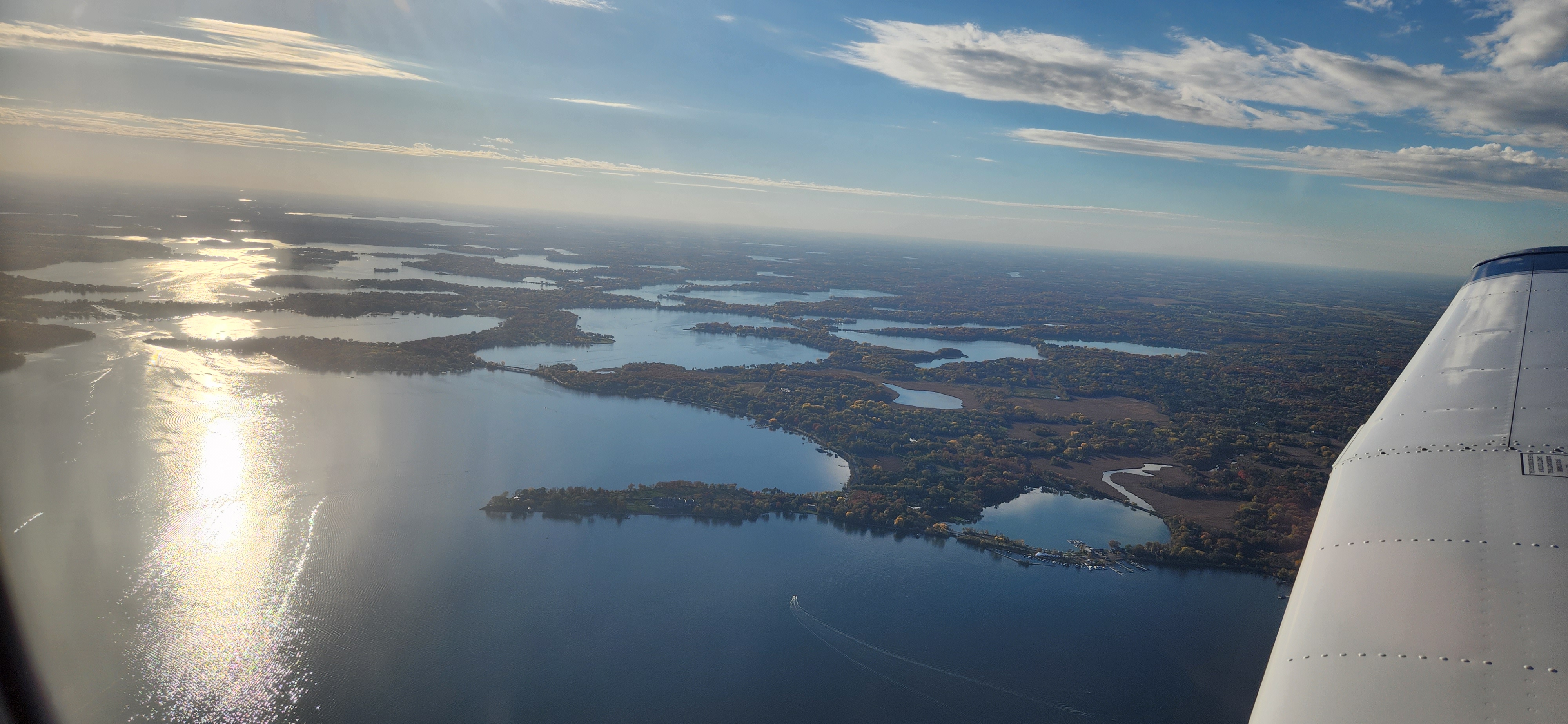 It was a new airport and also a night time departure. With the help from ground and tower control, it was a smooth taxi and takeoff. We took off from Des Moines at approximately 8:45pm and with a favorable wind, we landed at Crystal around 10:30pm. In addition to a long journey, we had to come back to an airport where the control tower had closed for the night.