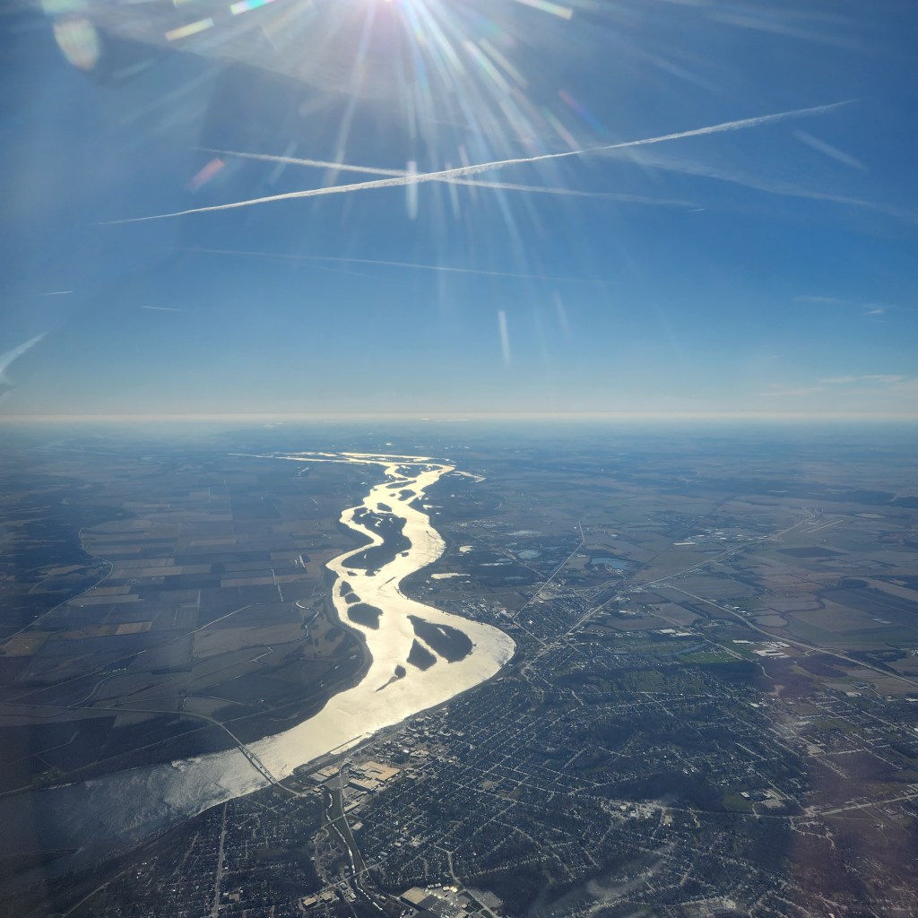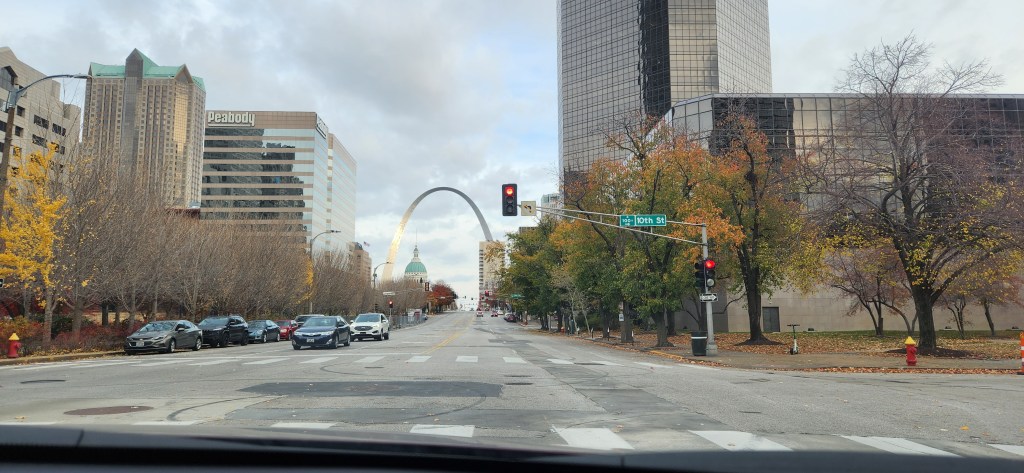 Although this was end of November, due to a mild winter we did not see any snow on the ground while flying through Minnesota, Iowa or Illinois. While coming in to land at the St. Louis Downtown airport, we could see the famous Arch nearby.