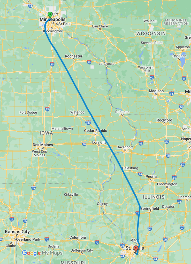 During Thanksgiving weekend, we decided to take a (relatively) long trip and cover two cities. We started our journey with a flight to St. Louis. Leaving Crystal (KMIC) at approximately 10:30am, we reached St. Louis in 3 hours.