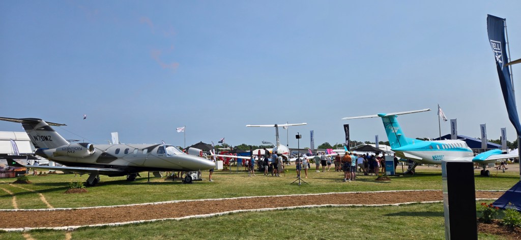 The Piper, Cessna, and Cirrus tents showcased their latest offerings, and it was exciting to see new models like the Piper Fury, Cessna 208T, and Cirrus G7 in person. Each aircraft gleamed under the sun, a testament to modern aviation engineering. The corporate jets, such as the Citation, were also on display, adding a touch of luxury to the event.