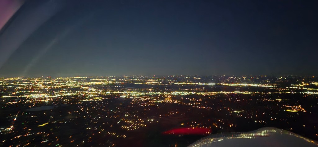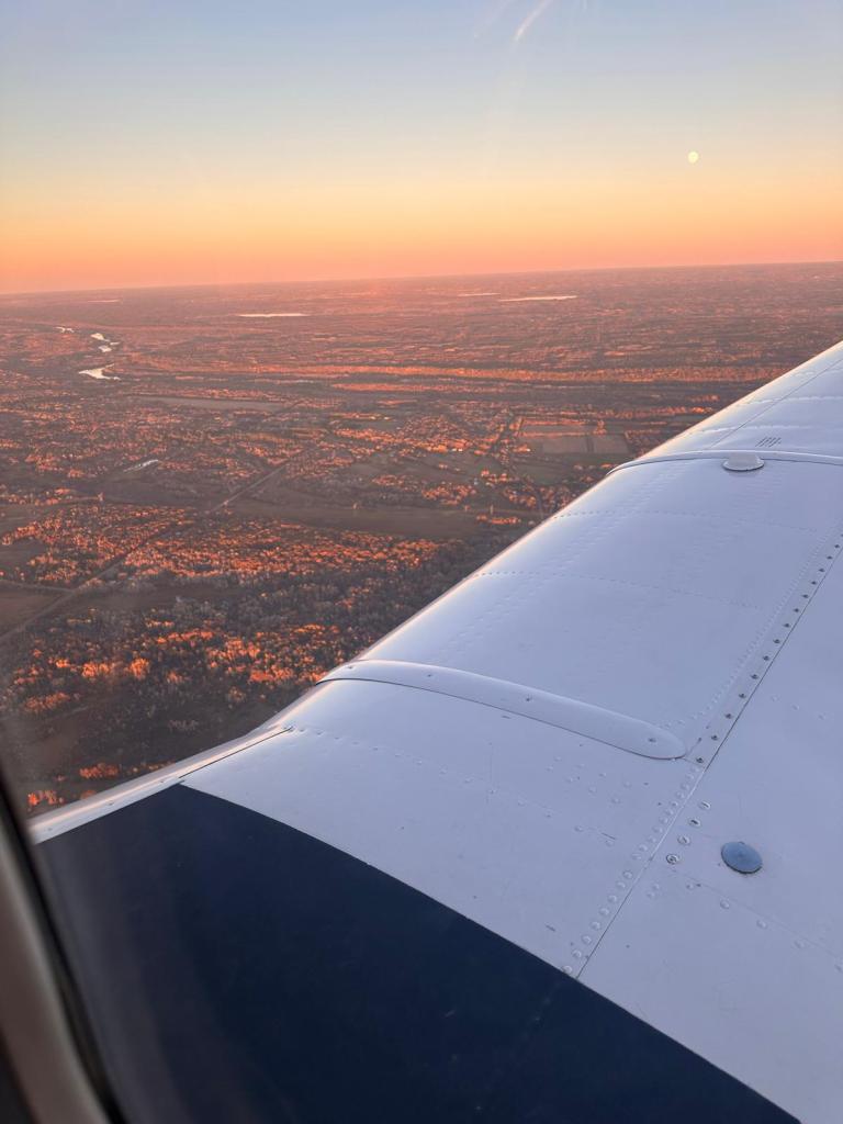 With the day behind us, we returned the courtesy car and prepared for our night flight back to Crystal. There’s something magical about flying at night—the darkness of the Midwest contrasts sharply with the twinkling lights of the cities below. The view from above felt like a calm end to an eventful day.