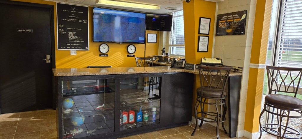 Halfway through the trip, our digital fuel measurement system suddenly showed fuel burn three times higher than expected! Thankfully, the old-school analog gauges reassured me that we had enough fuel. Still, caution won out, and we decided to make an unscheduled stop at Plymouth Municipal Airport in Indiana. - A Quick Break: