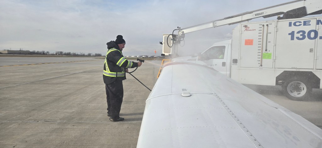 I requested help from the FBO, and they brought out a de-icing truck typically used for larger jets. Watching the truck spray our small plane was both surreal and reassuring—the crew meticulously ensured every trace of ice was removed.